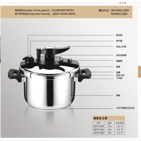 最新供應(yīng) >> 不銹鋼廚具系列 >> 科達(dá)壓力鍋